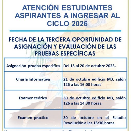 Publicada 6 octubre, 2025 Asignación 3ra. oportunidad. Prueba Específica para Ingresar 2026.Del 13 al 20 de octubre 2025 https://radd5.virtual.usac.edu.gt/ectafide